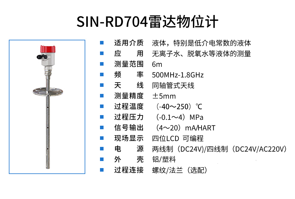 當前位置:首頁 > 雷達液位計 > 聯測_SIN-RD704雷達液位計_適用于無離子水、脫氧水等液體_