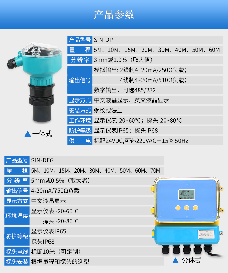 當前位置:首頁 > 超聲波液位計 > 聯測_SIN-DFG_基礎款_分體式超聲波液位計/物位計/水位儀 污水 料位液位測量_